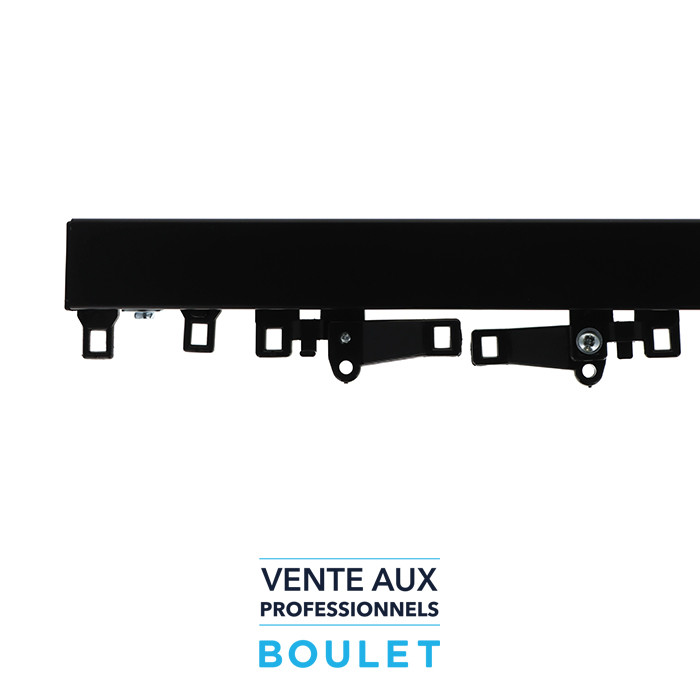 Composition de la tringle : 1 rail sur mesure de 1M00 à 5M95 en 1 partie + 10 suspendeurs au mètre + 2 fixes embouts + 2 conducteurs croisants.